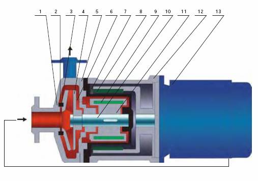 它是由葉輪,泵體,泵蓋,擋水圈,泵軸,軸承,密封環,填料函,軸向力平衡裝置。葉輪是離心泵的核心部分,它轉速高輸出力大。泵體也稱泵殼,它是水泵的主體。起到支撐固定作用,并與安裝軸承的托架相連接。泵軸的作用是借聯軸器和電動機相連接,將電動機的轉矩傳給葉輪,所以它是傳遞機械能的主要部件。密封環又稱減漏環。填料函主要由填料,不讓泵內的水流流到外面來也不讓外面的空氣進入到泵內。始終保持水泵內的真空!當泵軸與填料摩擦產生熱量就要靠水封管注水到水封圈內使填料冷卻。軸向力平衡裝置,在離心泵運行過程中,由于液體是在低壓下進入葉輪,而在高壓下流出,使葉輪兩側所受壓力不等,產生了指向入口方向的軸向推力,會引起轉子發生軸向竄動,產生磨損和振動,因此應設置軸向推力軸承,以便平衡軸向力。